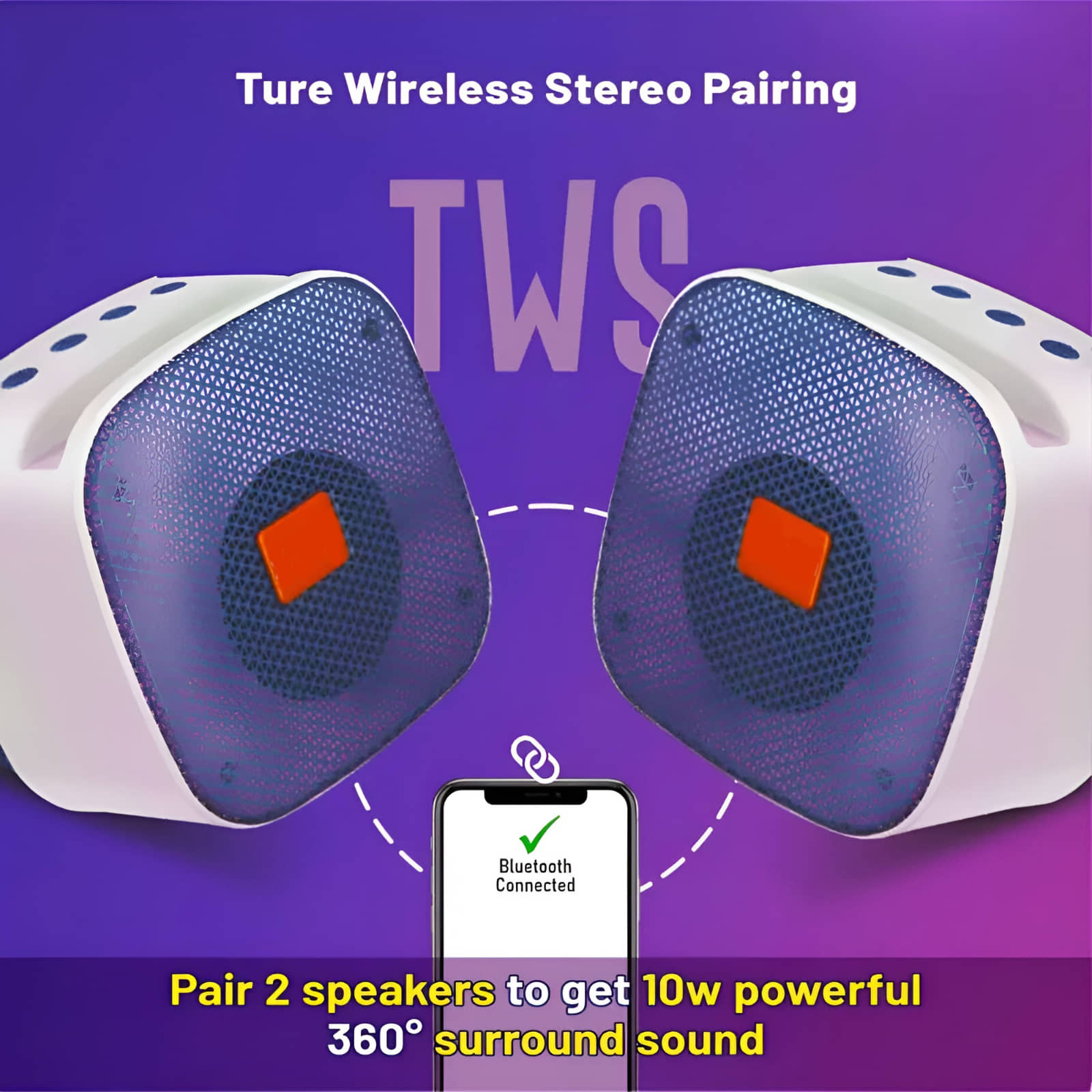 Portronics Fynix Mini Dual Passive Radiator, Upto 4 Hours Playtime, Type C Charging, TWS Mode