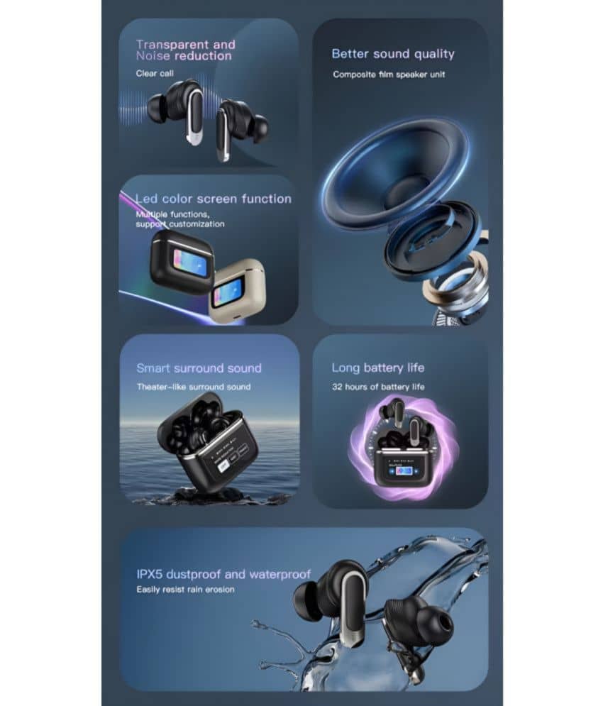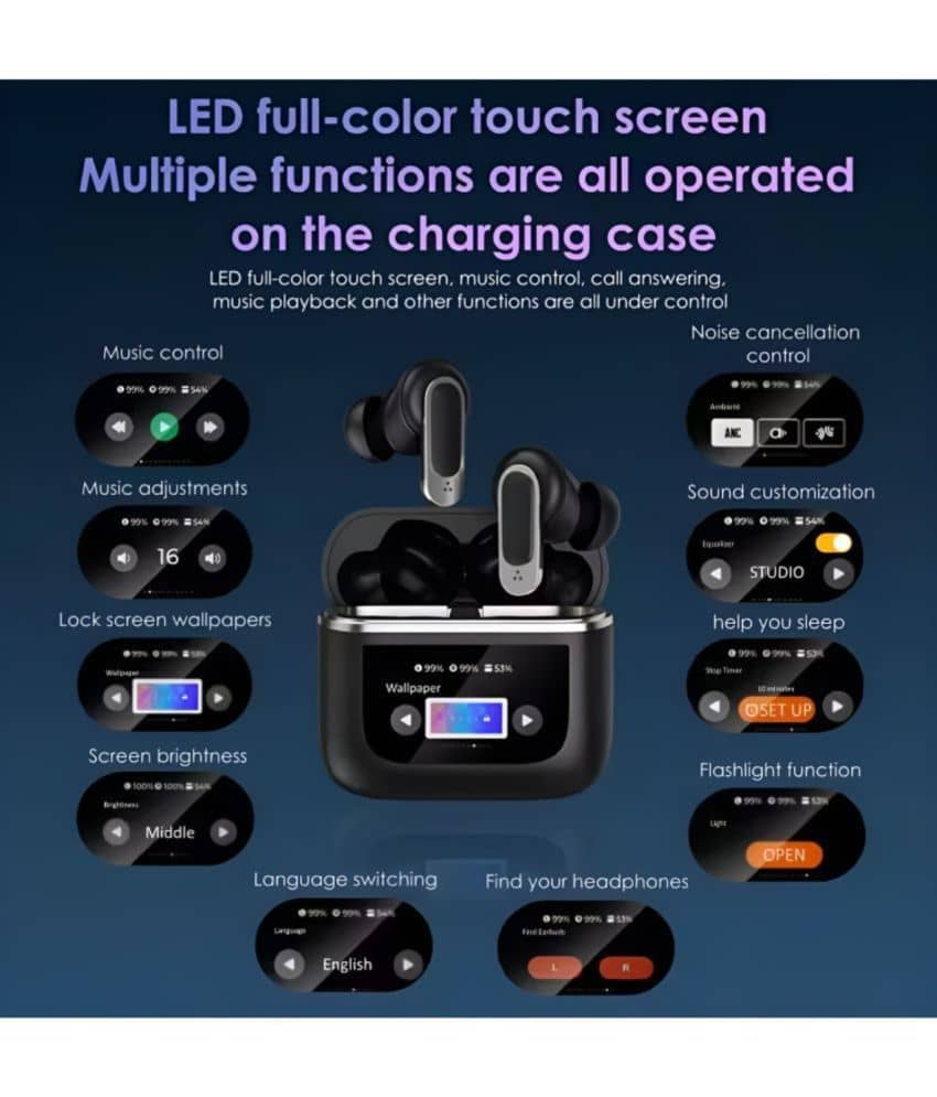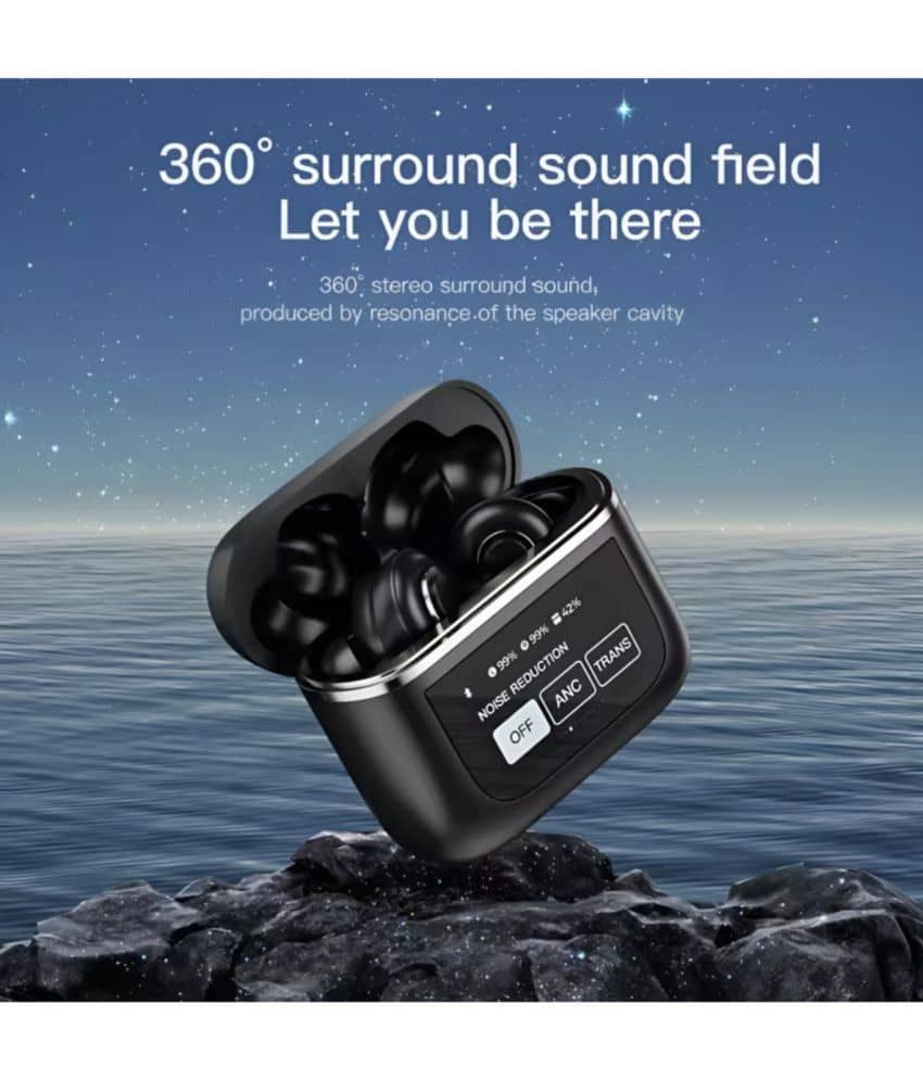 VERONIC V8 TouchScreen ANC Bluetooth True Wireless (TWS) In Ear 32 Hours Playback Active Noise cancellation IPX4(Splash & Sweat Proof) Black