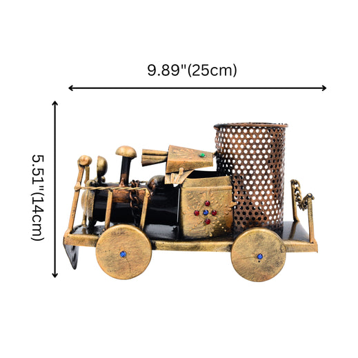This vintage-style iron train engine pen stand is both a practical and decorative piece for any desk. Featuring intricate details and a rustic finish, it serves as an eye-catching pen holder, making it an ideal and perfect gift., Material - Iron