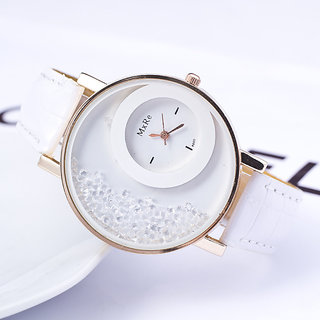 Women White Diamond Dial Sliver Belt Analog Party Girls Watches