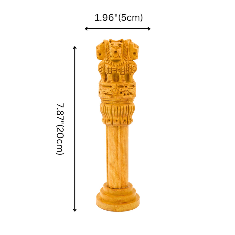 This stunning wooden Ashoka Pillar, a faithful representation of Indias national emblem, embodies cultural richness and artistic excellence. With detailed carvings and superb craftsmanship, it makes a captivating focal point for any space, symbolising national pride and heritage.Wood