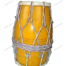 Yellow Dholak Instrument Nut Bolt Wood Traditional Musical Dholak