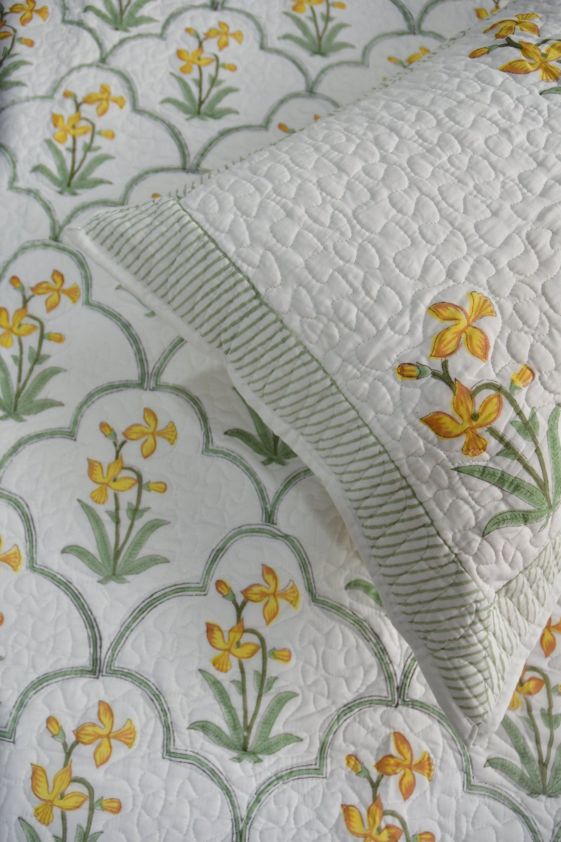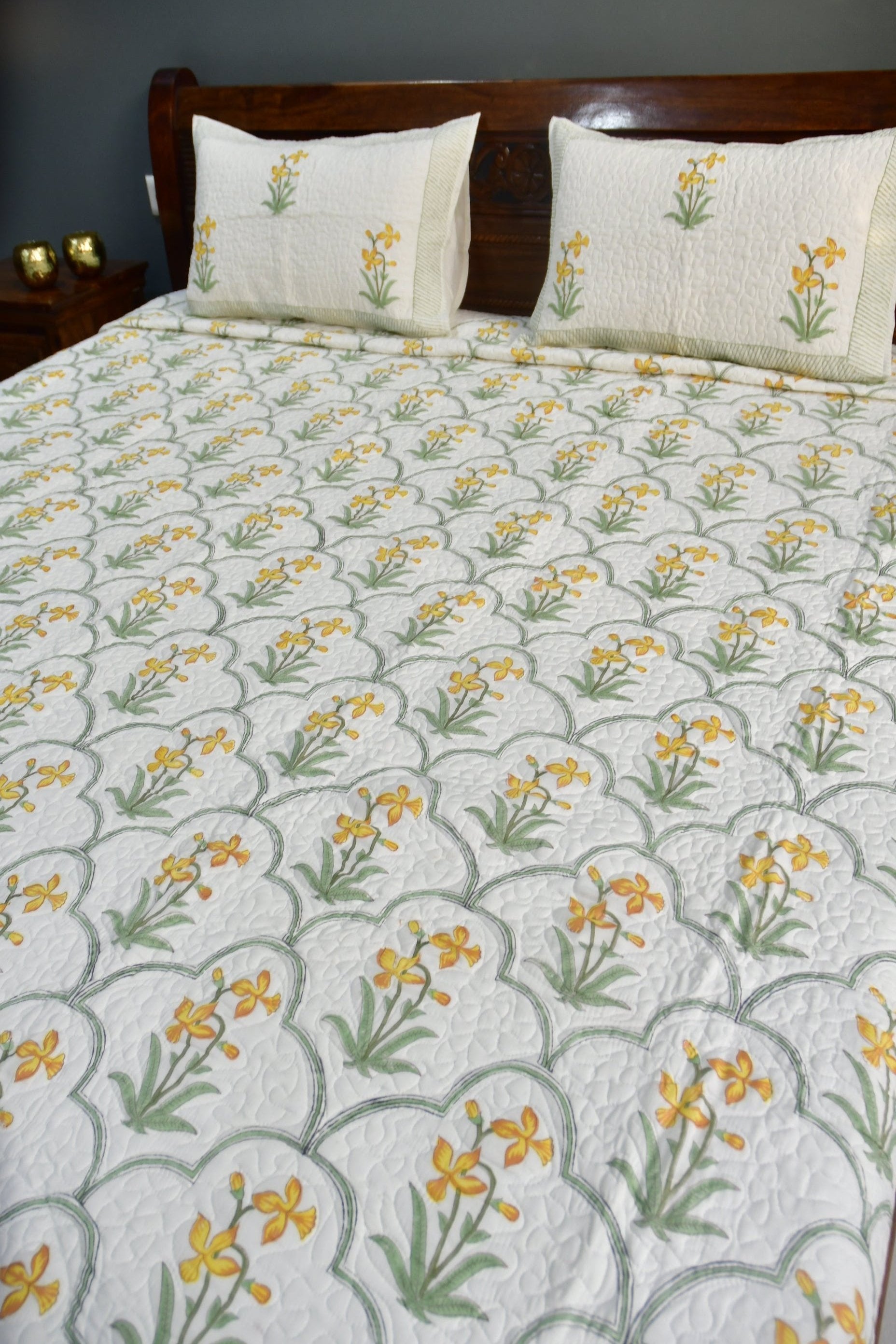 Yellow Jaal Handblock Bedcover : Timeless Design King size 90x108 inches
